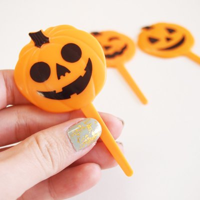 〒 ケーキピック/カボチャ顔(3本入・オレンジ)