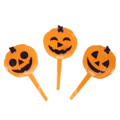 〒 ケーキピック/カボチャ顔(3本入・オレンジ) [DCP18834]
