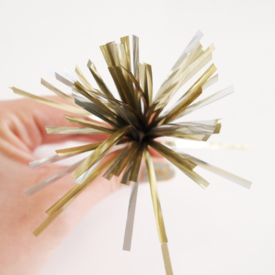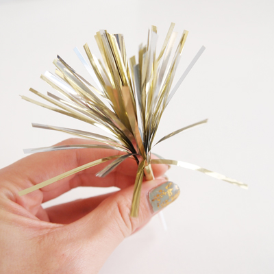 最初はホウキの様な形をしていますが。ティンセル部分をまとめているパーツを取るとメイン写真の用に広がります。