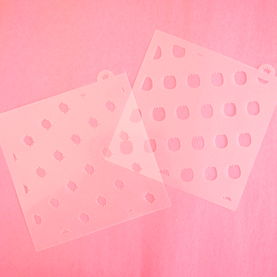 ステンシルの厚みが薄めなのでアイシングクッキーの柄付けや、小さめケーキのデコレーション等、自由な発想でご活用ください。
