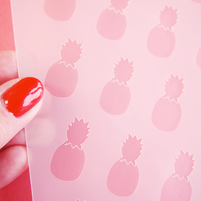 5.5インチ正方形のステンシルで、パイナップル柄です。葉っぱと実部分に分かれていて、