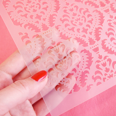 The Cookie Countess(クッキー・カウンテス)ブランド。5.5インチ正方形のステンシルで、ダマスクフラワー柄です。