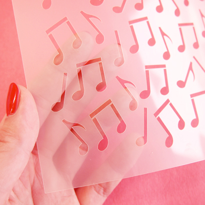 5.5インチ正方形のステンシルで、音符柄です。