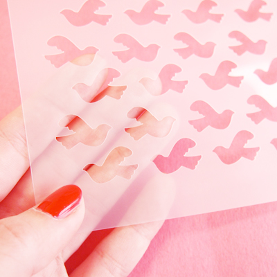 ステンシルの厚みが薄めなのでアイシングクッキーの柄付けや、小さめケーキのデコレーション等、自由な発想でご活用ください。