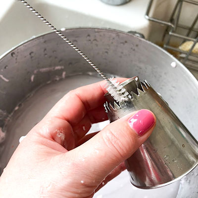 とても大きめな口金でギザギザに手がささると流血騒動にもなりますので「口金ブラシ」でコショコショっと細かな部分まで洗えますが...
