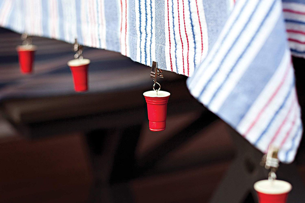 重りをつるすことでテーブルクロスのシワがのびてピッとする効果も狙えます。