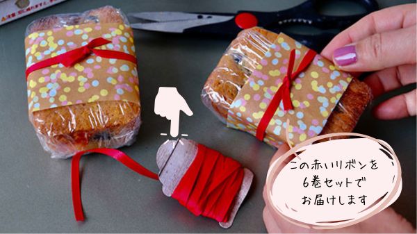 | サイズ | リボン幅が約0.5cm/ 1巻が約390cm(6巻合計=約2340cm) |
