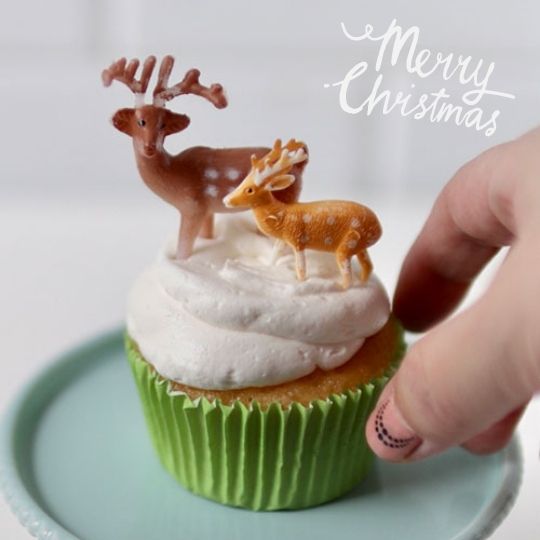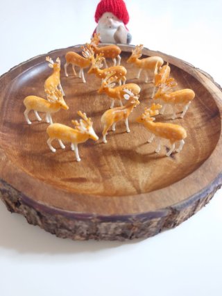 プチプラおすすめクリスマスグッズ🎄lavender さん画像見て一目惚れしたトナカイの子ども達❤️ケーキにトッピンも💞このままテーブルに飾って置くだけでも🎄気分を味わえてほっこりします😍大きさがわかるように爪楊枝と比較した写真あります!