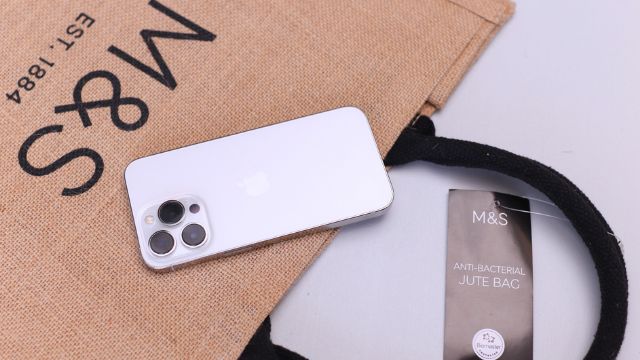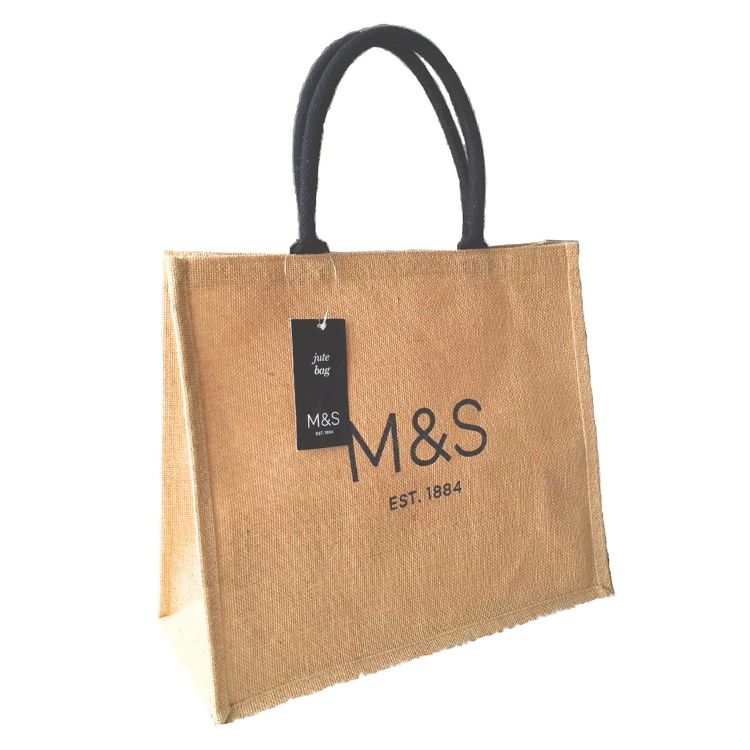 M&S(マークス&スペンサー)のシンプルなロゴとカラーリングのジュートバッグです
