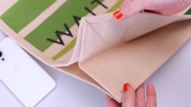 爽やかなグリーンのストライプ・グラデーション、シンプルなロゴの飽きがこないシンプルなデザインなジュートバッグ
