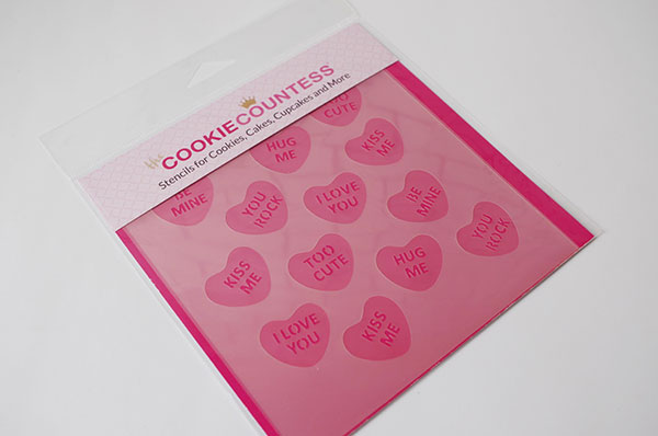 5.5インチ正方形のステンシルで、ハートと、合わせて使う文字がセットになっています。