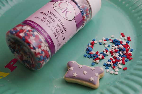 このスプリンクルは米国製で、Fourth of July(7月4日)の独立記念日に使用することが多いですが、日本だったら七夕でもいいし、ブルーがきいているので夏っぽさを演出に役立ちます