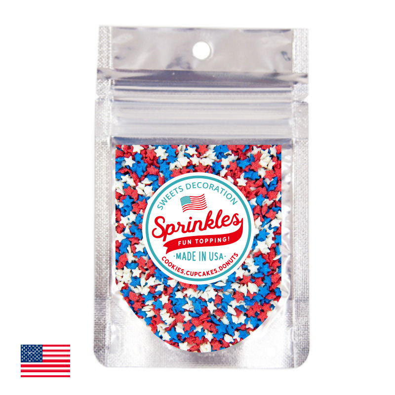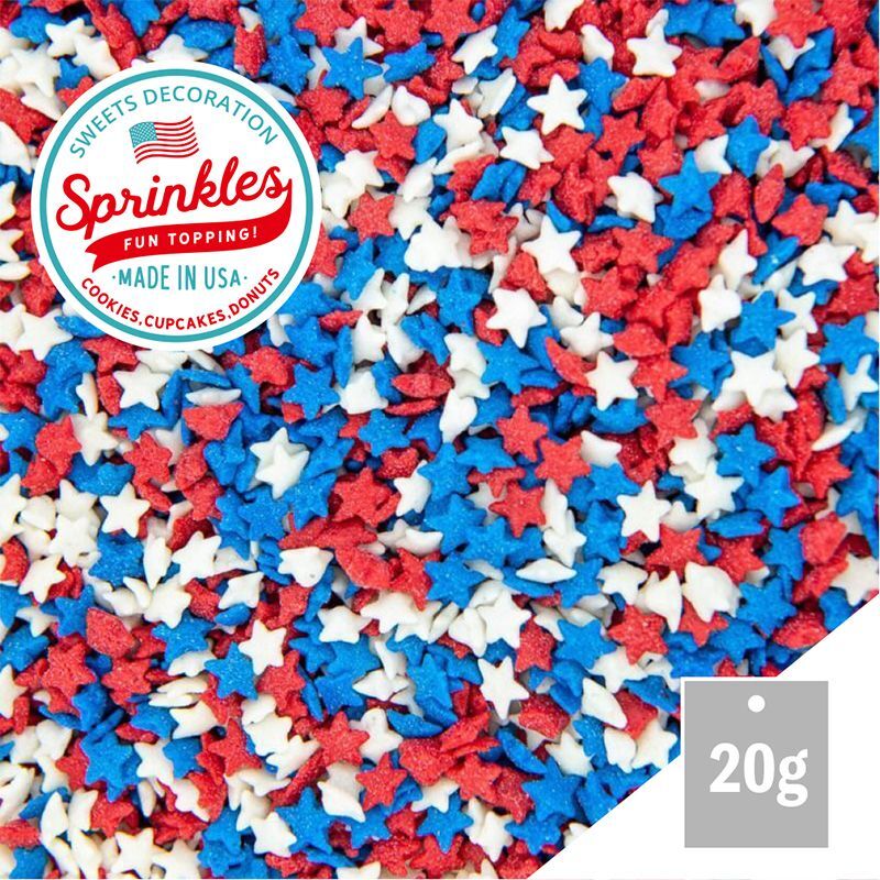 発色の良い米国製スプリンクル・アメリカンカラーの小さな星の形。ポスト配送可能な20g小袋タイプです。