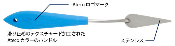 Ateco社ブランドカラーの空色の持ち手は食用グレードで衛生的に手入れがしやすいのが特徴。