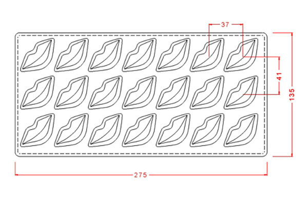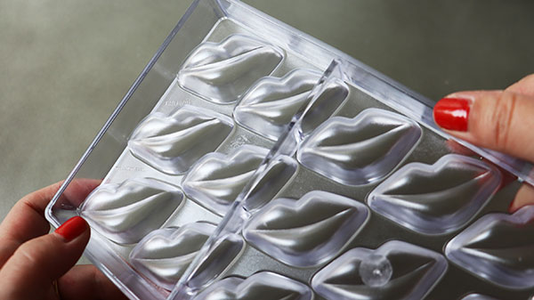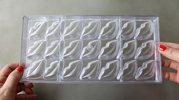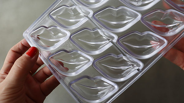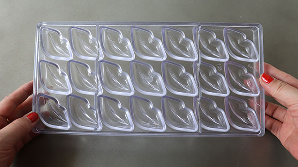 クチビルの形をしたポリカーボネイト製のチョコレート型で、3列✖️7= 一度に21個のチョコを作ることができます。