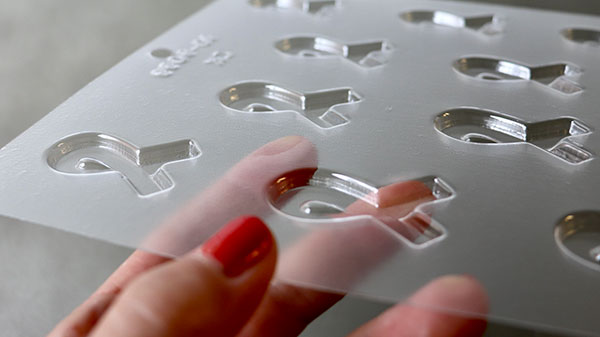 | 素材 | ポリエチレン(耐熱温度65度)下敷きのような素材なのでカタチによって真っ平らにはならず、机でカタカタいう場合がありますが、凹みに入れたチョコが流れ出ませんので良品となります。 |