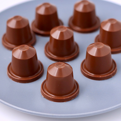 本物のコーーヒーカプセルと、ほぼ同じサイズ感のチョコレート型です。