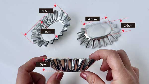 タルト型6種、それぞれのサイズ