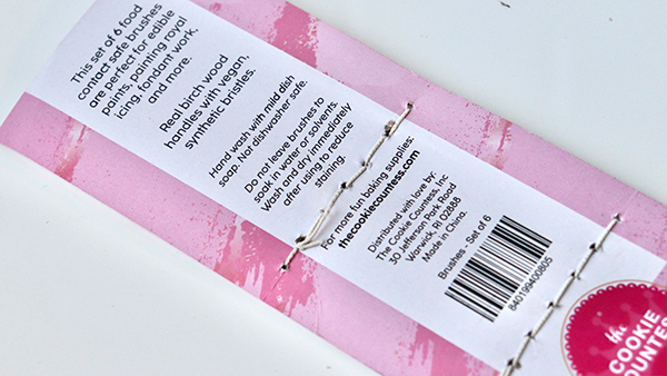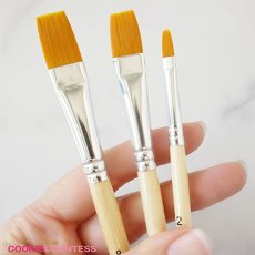 ヘッドは食品クオリティの合成ヘアブラシで、1〜1.75cmのポイントチップブラシ3種と、1〜2cmのフラットトップブラシ3種がセットになっています。