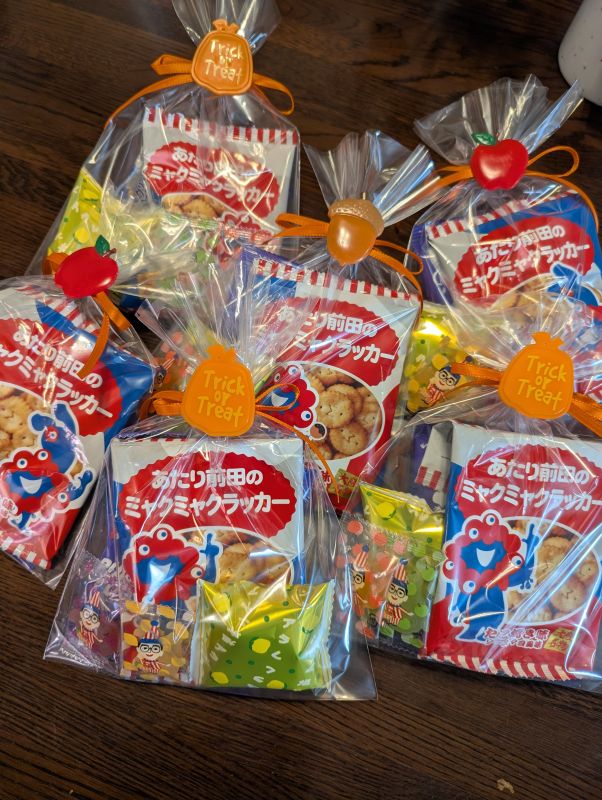 お土産も兼ねてますがハロウィンパーティで配る用です。画像の袋のサイズはB5です。