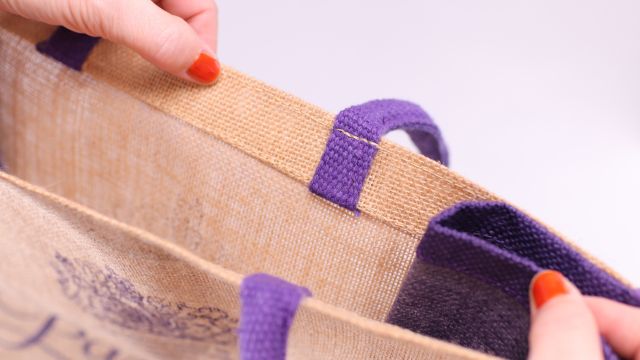 肩にかけるヒモが体に食い込みずらく、重い荷物が少し軽く感じられる作りがジュートバッグの魅力