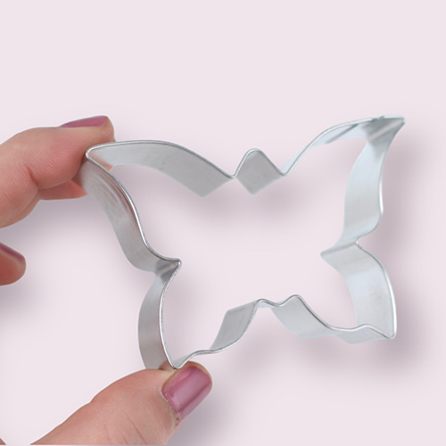 チョウチョのクッキー型、角がしっかりとしたエレガントなデザイン。サイズは約8×5.4cmです
