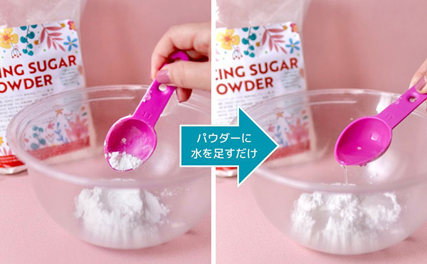 アイシングシュガーパウダーは水だけで簡単にクリームが作れます。