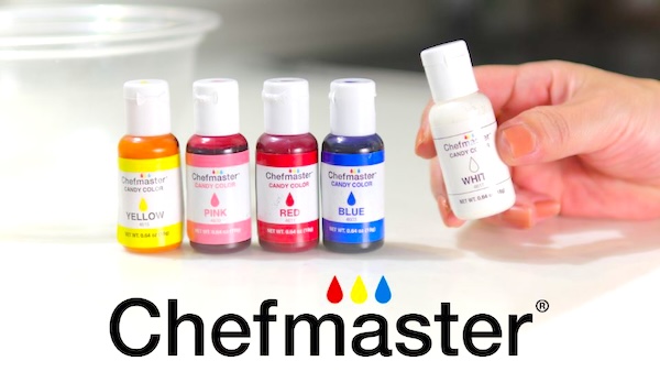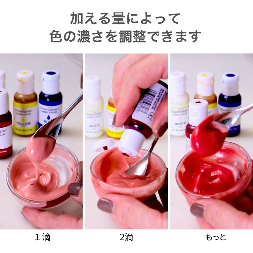 油性製品に最適な Chefmaster's® チョコレート用着色料は、チョコレートやキャンディ、バタークリームなどの油分が多く食材に混ぜても分離しないよう配合されています