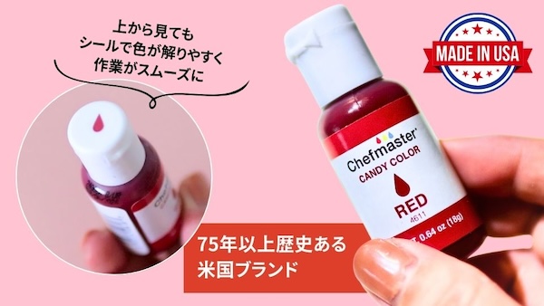 長年「粉」のチョコレート着色料をご紹介していましたが、お客様のお問い合わせやトラブルを考慮し、75年以上の歴史ある米国ブランドChefmaster(シェフマスター)社の商品を取り扱うことになりました