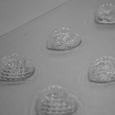 | 素材 | ポリエチレン(耐熱温度65度)下敷きのような素材なのでカタチによって真っ平らにはならず、机でカタカタいう場合がありますが、凹みに入れたチョコが流れ出ませんので良品となります。 |