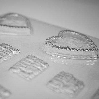 | 素材 | ポリエチレン(耐熱温度65度)下敷きのような素材なのでカタチによって真っ平らにはならず、机でカタカタいう場合がありますが、凹みに入れたチョコが流れ出ませんので良品となります。 |