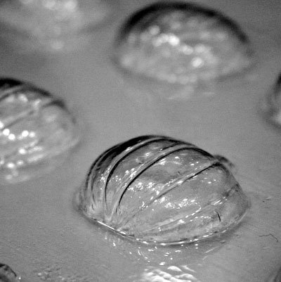 | 素材 | ポリエチレン(耐熱温度65度)下敷きのような素材なのでカタチによって真っ平らにはならず、机でカタカタいう場合がありますが、凹みに入れたチョコが流れ出ませんので良品となります。 |
