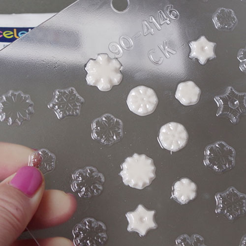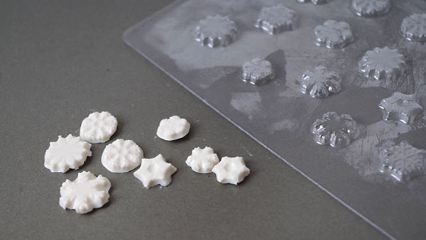 小さな雪の結晶(スノーフレーク)のチョコがたくさん作れるチョコレート型。大小複数種が1度に計65個つくれます。