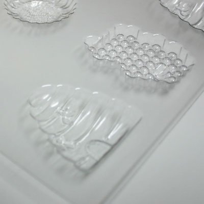 | 素材 | ポリエチレン(耐熱温度65度)下敷きのような素材なのでカタチによって真っ平らにはならず、机でカタカタいう場合がありますが、凹みに入れたチョコが流れ出ませんので良品となります。 |
