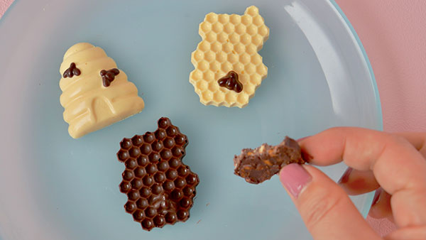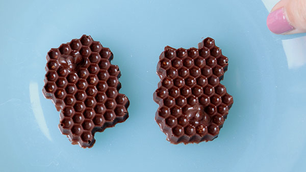 外側から見たミツバチの巣、ミツバチの巣の中、あとはヒマワリ、計3種類がそれぞれ3コづつついてるチョコレート型です。