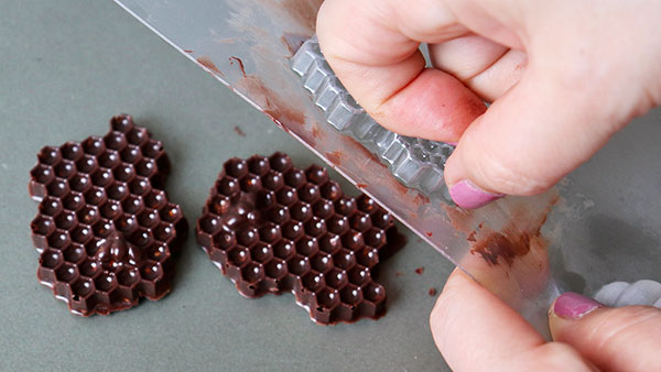 冷凍庫で急速に冷やすこと約10分... 凸側からデコピンでコンコンと叩くか、チョコ型を少し歪めてあげるとポコッととれます。