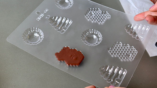 もし型から抜けない場合は、追加で5分ほど冷凍庫へ入れてみてください。キャンディライターの場合はこれでキチンと抜けます(テンパリングに失敗したチョコは抜けないのでご注意を)