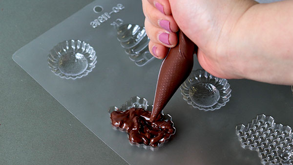 キャンディライター(絞り袋に入れたキャンディコート)を凹みに絞り入れて....