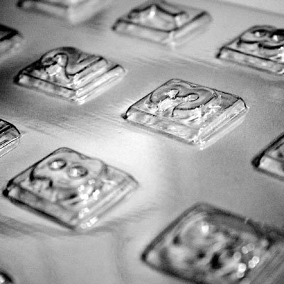 | 素材 | ポリエチレン(耐熱温度65度)下敷きのような素材なのでカタチによって真っ平らにはならず、机でカタカタいう場合がありますが、凹みに入れたチョコが流れ出ませんので良品となります。 |