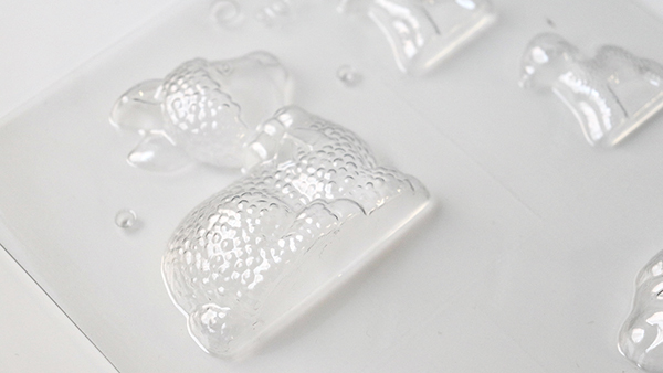 凹凸でモコモコした質感がついてて、ソフトな雰囲気で可愛らしいヒツジの立体チョコレートが作れるチョコレート型。