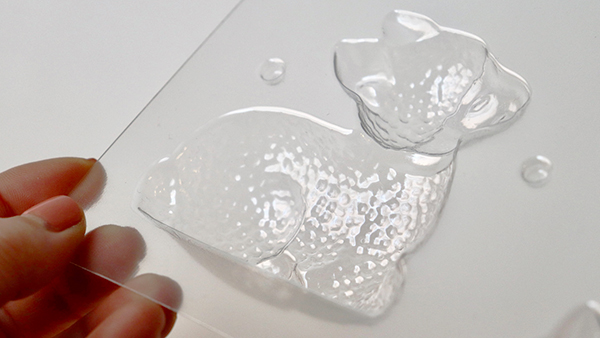 | 素材 | ポリエチレン(耐熱温度65度)下敷きのような素材なのでカタチによって真っ平らにはならず、机でカタカタいう場合がありますが、凹みに入れたチョコが流れ出ませんので良品となります。 |