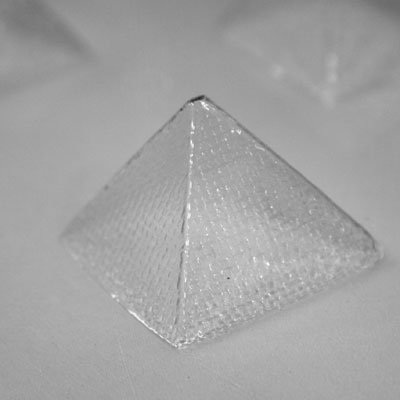 中にガナッシュなどを入れて本格的なチョコが作れるボンボンタイプのチョコレート型。シャープでスマートな印象のピラミッド型、表面に細かい網状の柄がつくようなデザインです。
