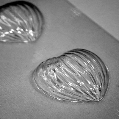 たてにラインが入っていて、アンティーク風でもあり、シンプルな雰囲気もあるハートのチョコレート型。