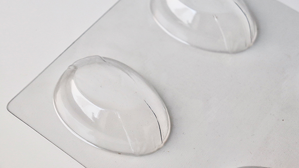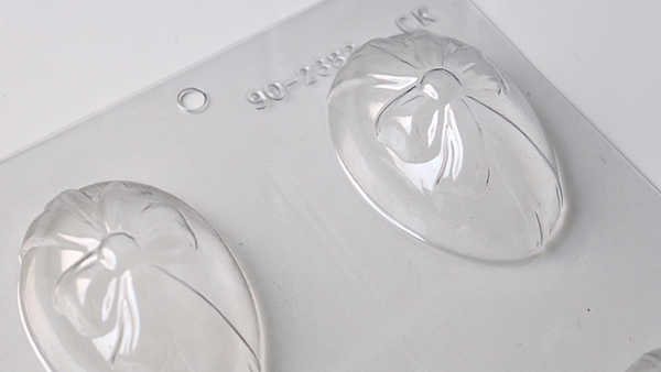 卵のボックスが作れるチョコレート型、タマゴにはリボンがかかっています。リボンは凹凸感があります。