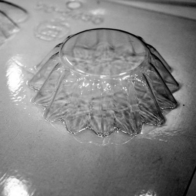 アンティークなチョコレート型によくあるカタチで、型にそってチョコを塗り固め、デザートをのせる器にする時にこれを使うと、エレガントに仕上がると思います。