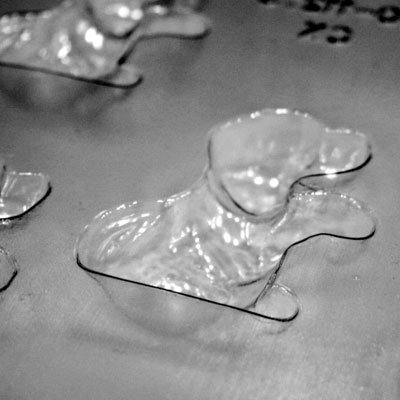 | 素材 | ポリエチレン(耐熱温度65度)下敷きのような素材なのでカタチによって真っ平らにはならず、机でカタカタいう場合がありますが、凹みに入れたチョコが流れ出ませんので良品となります。 |