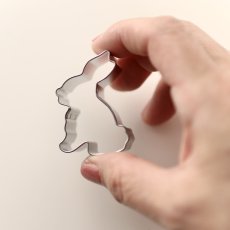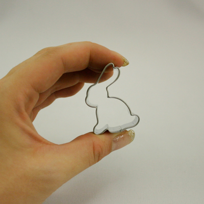 座ったウサギのクッキー型、顔の丸みがとてもカワイイくて人気のカタチです