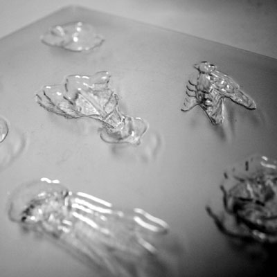 | 素材 | ポリエチレン(耐熱温度65度)下敷きのような素材なのでカタチによって真っ平らにはならず、机でカタカタいう場合がありますが、凹みに入れたチョコが流れ出ませんので良品となります。 |