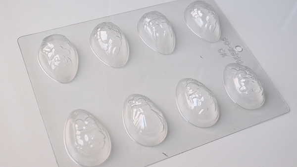 3種類のデザインがほどこされた、タマゴのチョコレート型。
