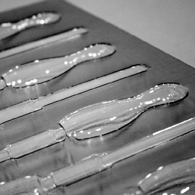 | 素材 | ポリエチレン(耐熱温度65度)下敷きのような素材なのでカタチによって真っ平らにはならず、机でカタカタいう場合がありますが、凹みに入れたチョコが流れ出ませんので良品となります。 |